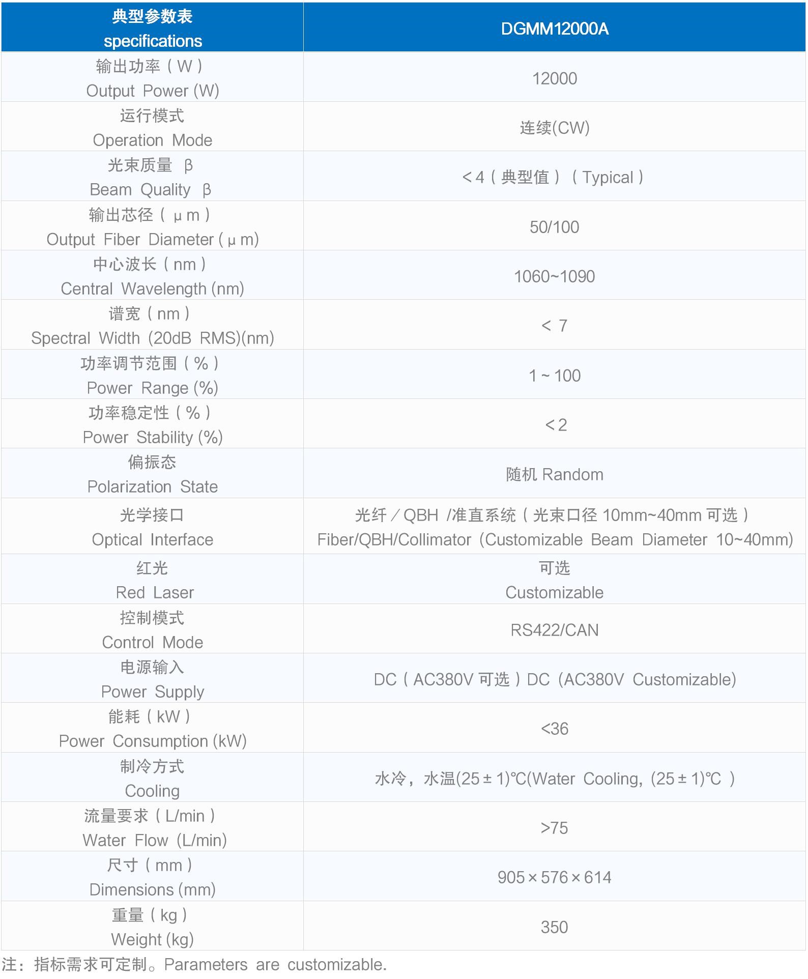 光學(xué)接口 Optical Interface | 光纖/QBH /準(zhǔn)直系統(tǒng)(光束口徑10mm~40mm可選) Fiber/QBH/Collimator (Customizable Beam Diameter 10~40mm) | ||
